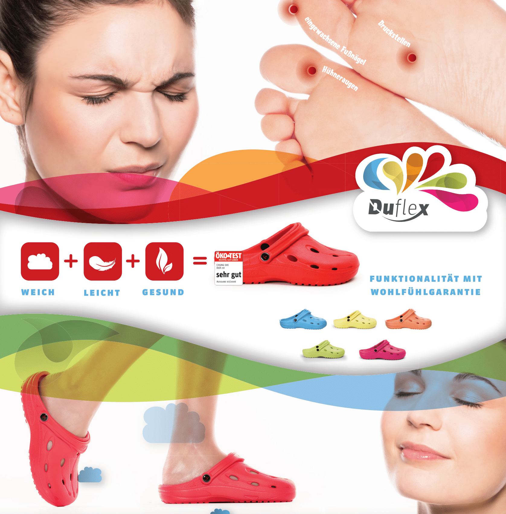 Freizeitschuhe für Haus, Garten, Stadt und Strand - in vielen Farben. Öko Test Platz 1. Optimal auch für Patienten in der Lymphtherapie, deren Beine zur Entstauung gewickelt werden müssen.